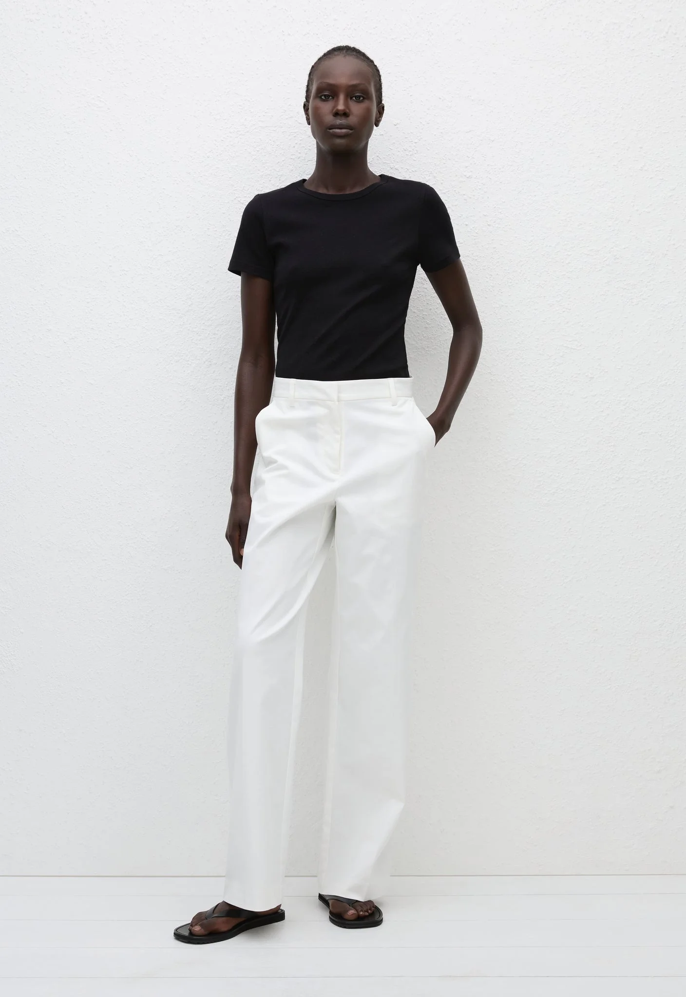 A workwear-inspired flat front trouser in our organic cotton-blend twill for everyday ease. This trouser features a tailored waist band, side pockets and a fly-front zip. Pair with any of our tees or tanks, and add our Boyfriend Belt for an elevated daytime look.